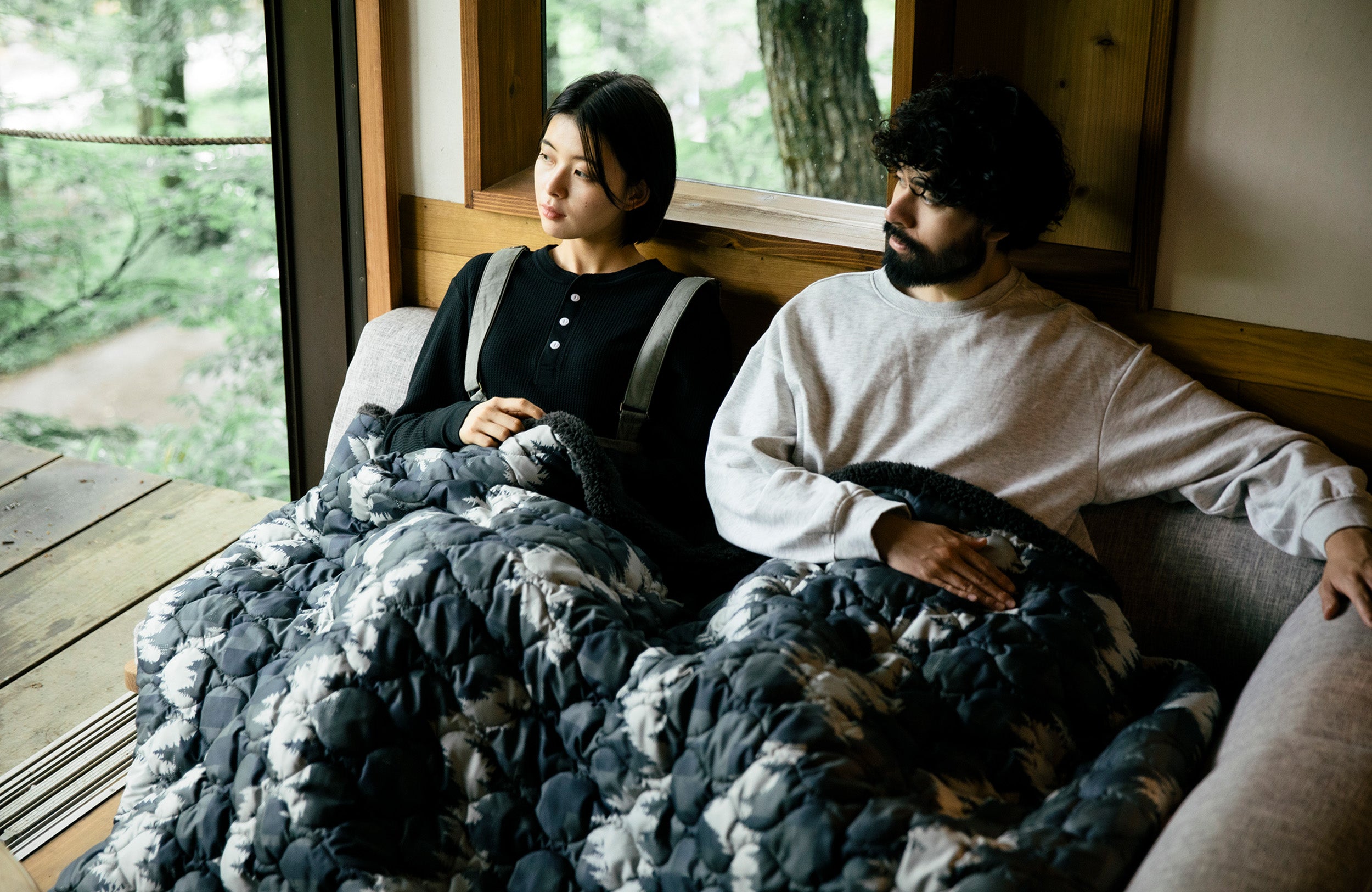 W発熱構造に進化した、新6層・魔法瓶ブランケットEDGE。光と湿気の力で自ら発熱し、電源なしでも−28℃で暖かさが持続。史上最高の発熱・保温力で、冬の車中泊やアウトドアを快適に。