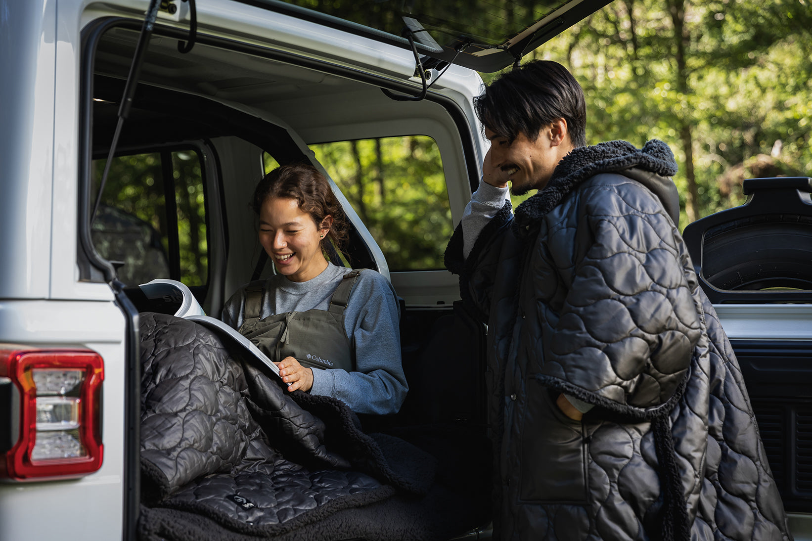 「着る・動けるブランケット」としてアクティブなバンライフに最適です。
