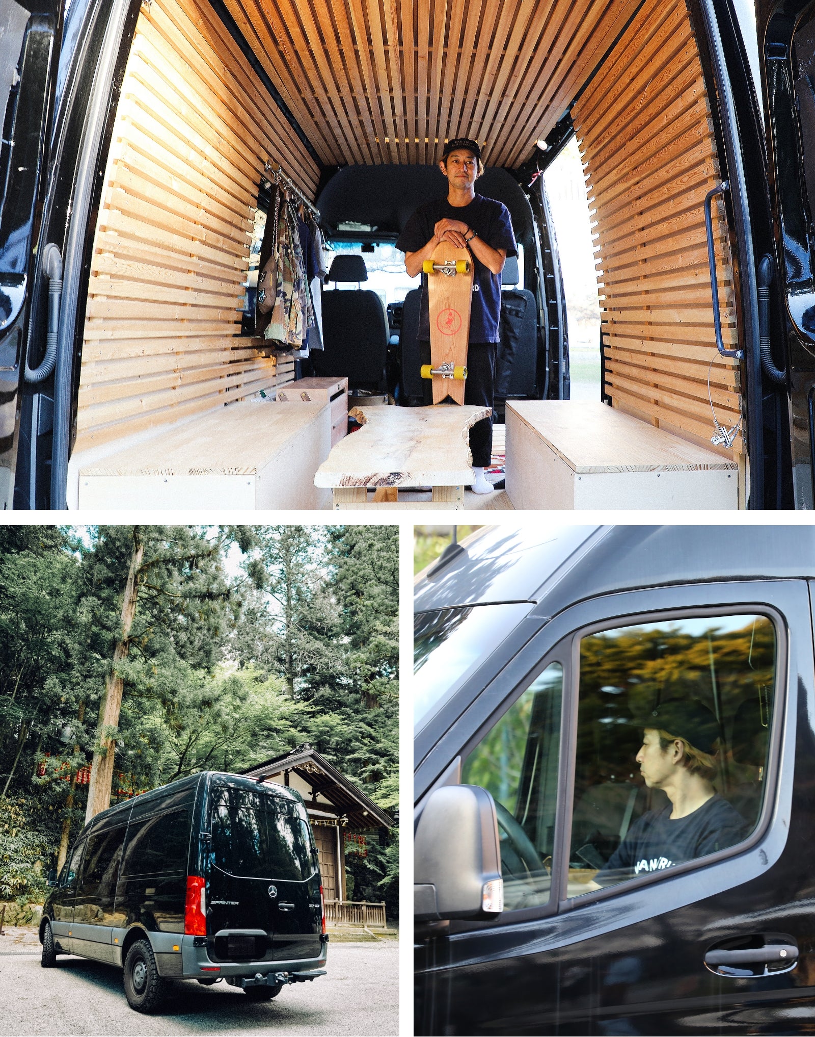 名古屋でヘアサロンを経営する島崎さんの趣味は、数年前から始めたというバンライフ(車中泊旅)。愛車は海外で商用バンとして使われてる「メルセデス・ベンツ 317 CDI スプリンター」で、バンライフにピッタリな広い室内空間が特徴的な一台。若い頃には旅先でよく車中泊していた経験があるが、バンライフを本格的に始めたのはこのスプリンターから。きっかけは旧友との再会だったという。