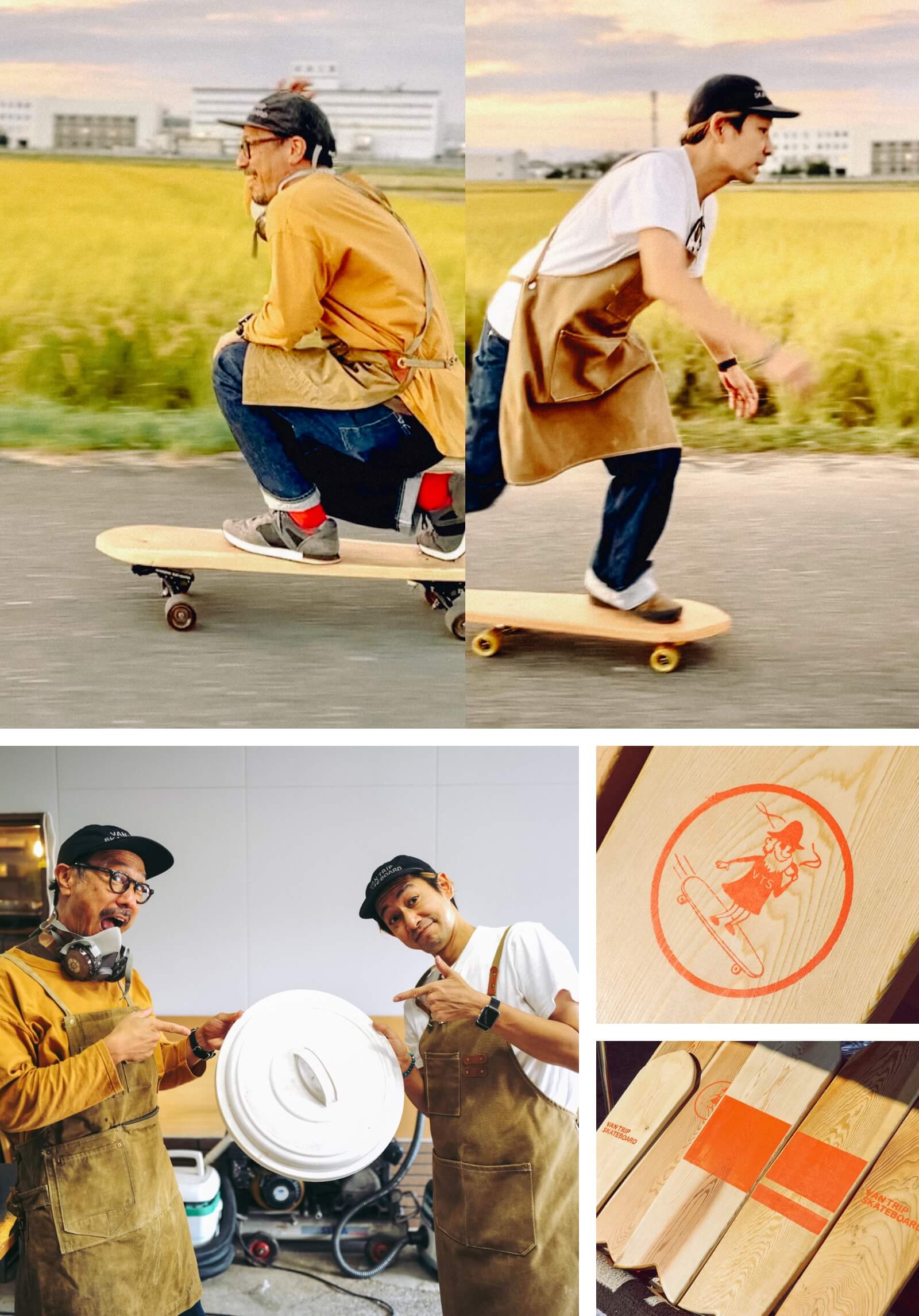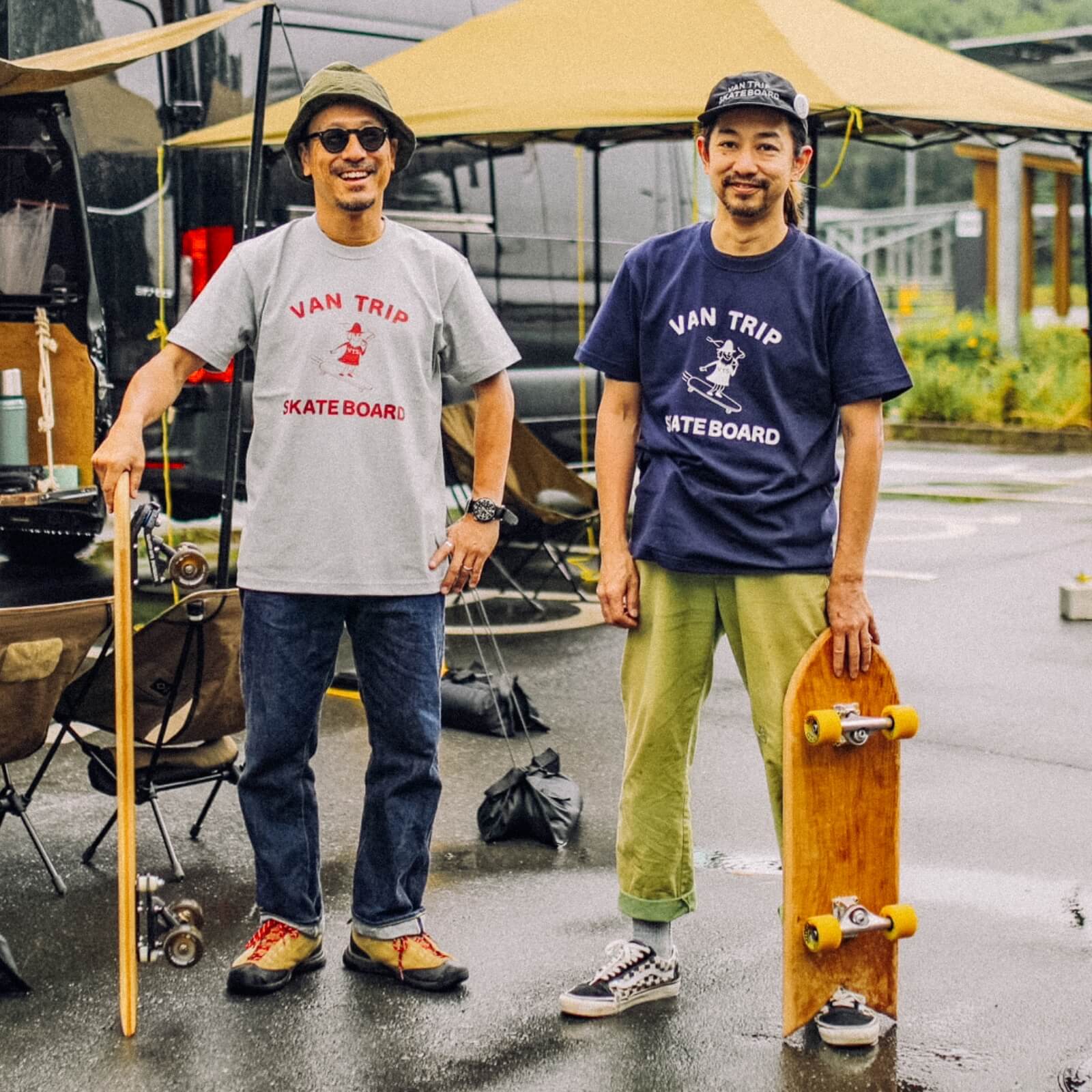 「もともと僕らはスケボー少年ですが、40代になった今だからこそ、面白い事をしようって友人の誘いもあり、ブランドを一緒に立ち上げました。40を超えたおじさんのするスケートボードは、オーリーとかキックフリップとかに挑まなくていい。旅先でコーヒーでも飲みながらゆっくりクルーズしようよ!っていうのがコンセプト。車中泊の旅に連れて行きたくなるようなクルーザータイプのスケートボードデッキで、まずは自分たちの“ワクワク“を中心に置いて“バンライフを楽しむ”が根っこにある活動なんです」