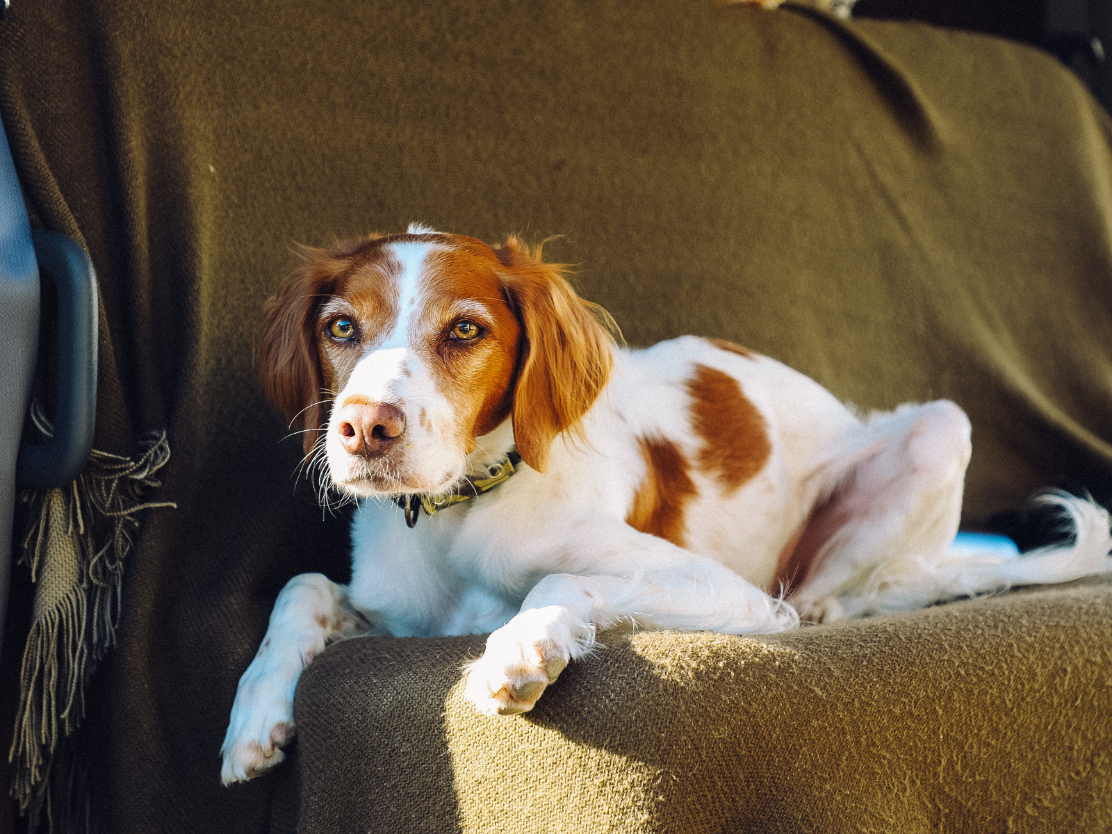 片寄さんの愛犬「ぶんた」5歳。日本では珍しいブリタニー・スパニエルという犬種。陽気で温厚な性格で、片寄さんとともにバンライフを楽しんでいる。