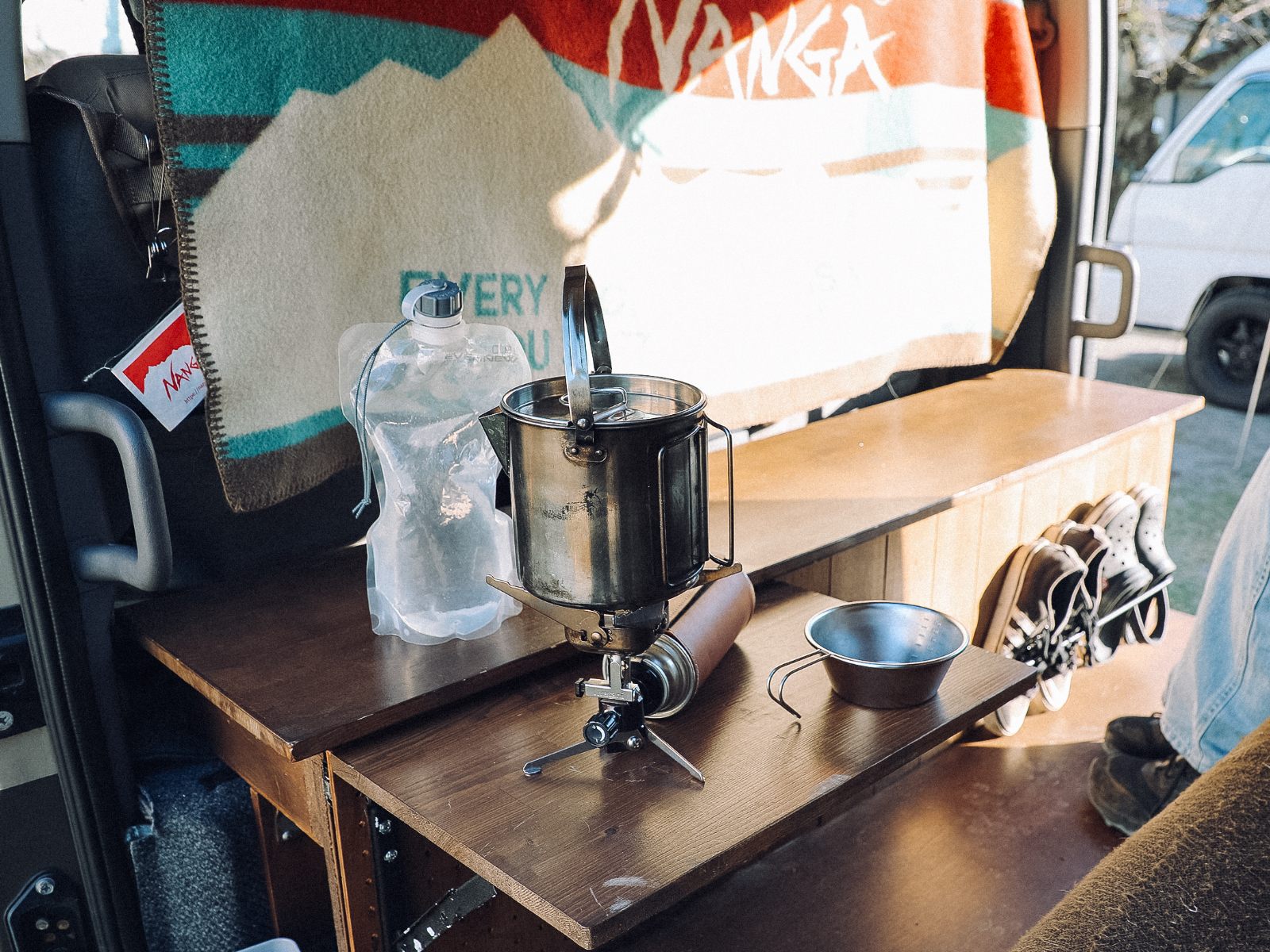 「今のクルマに乗るようになって、クルマでお昼寝をするのが好きになりましたね。特に好きな季節は、夏なんです!まだ、日が登りきっていない朝の6時から川遊びやSUPをして、9時ごろにはクルマに戻って。木陰に停めていれば涼しいですし、体も水で冷えています。そんな時に、犬も人も乾かすついでにクルマを全開にして、風を感じながらお昼寝をするのが、最高なんですよね。だいたい平日に遊ぶので、ほとんど人に会うこともなく、静かな時間です。お湯を沸かしてお茶を飲みながら、午後は何しようかな~と考えている時間も好きです。いつでもどこでも寝られるので、遠出の頻度はかなり増えましたね」