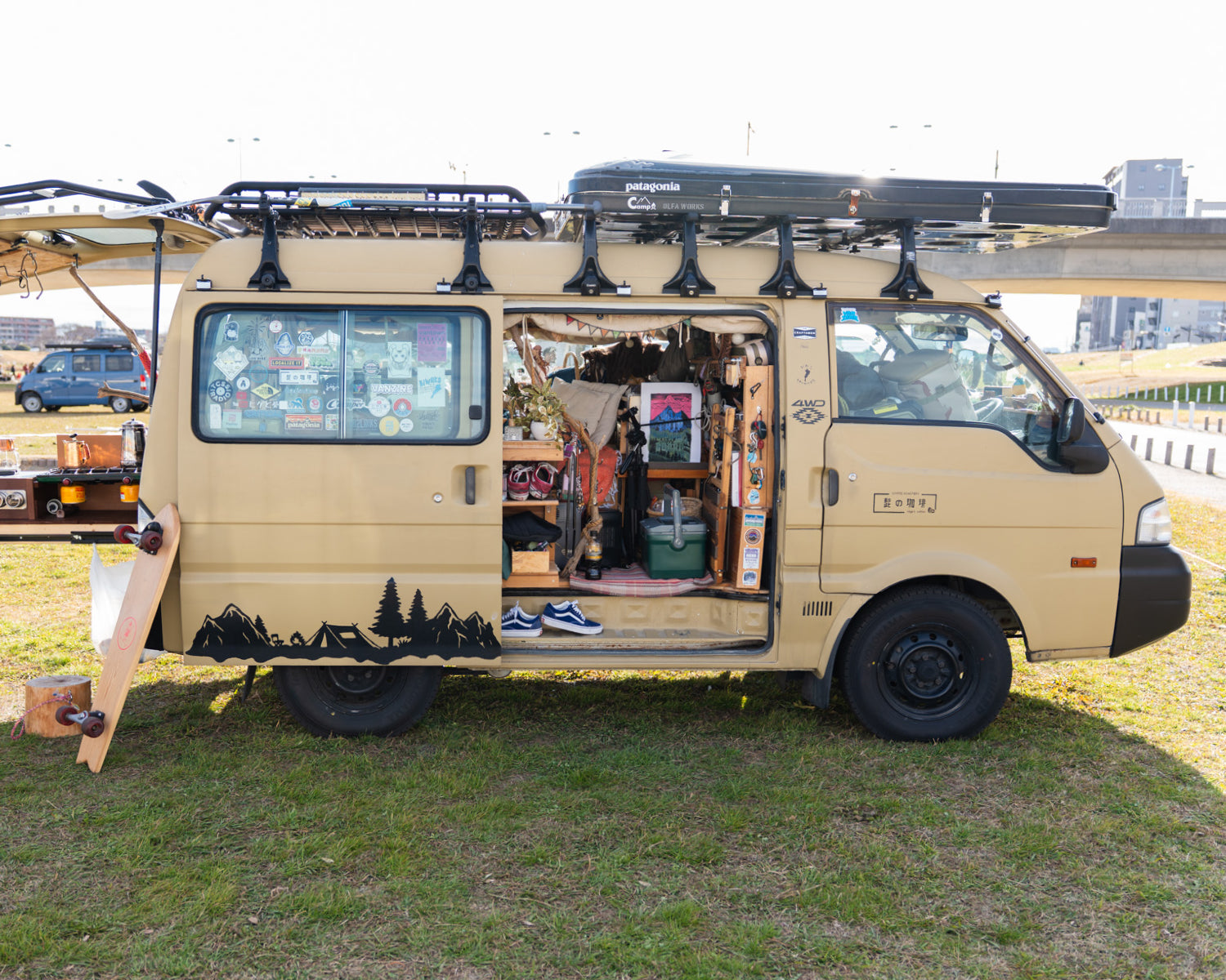 滋賀県という海のない土地からサーフィンに出かけるため、長距離移動が多かったことがきっかけで始まったという車中泊歴は25年にもなる。夜明け前に走り出し、そのまま現地で過ごす。そんな移動と遊びをつなぐ手段として、車中泊が定着していったとか。