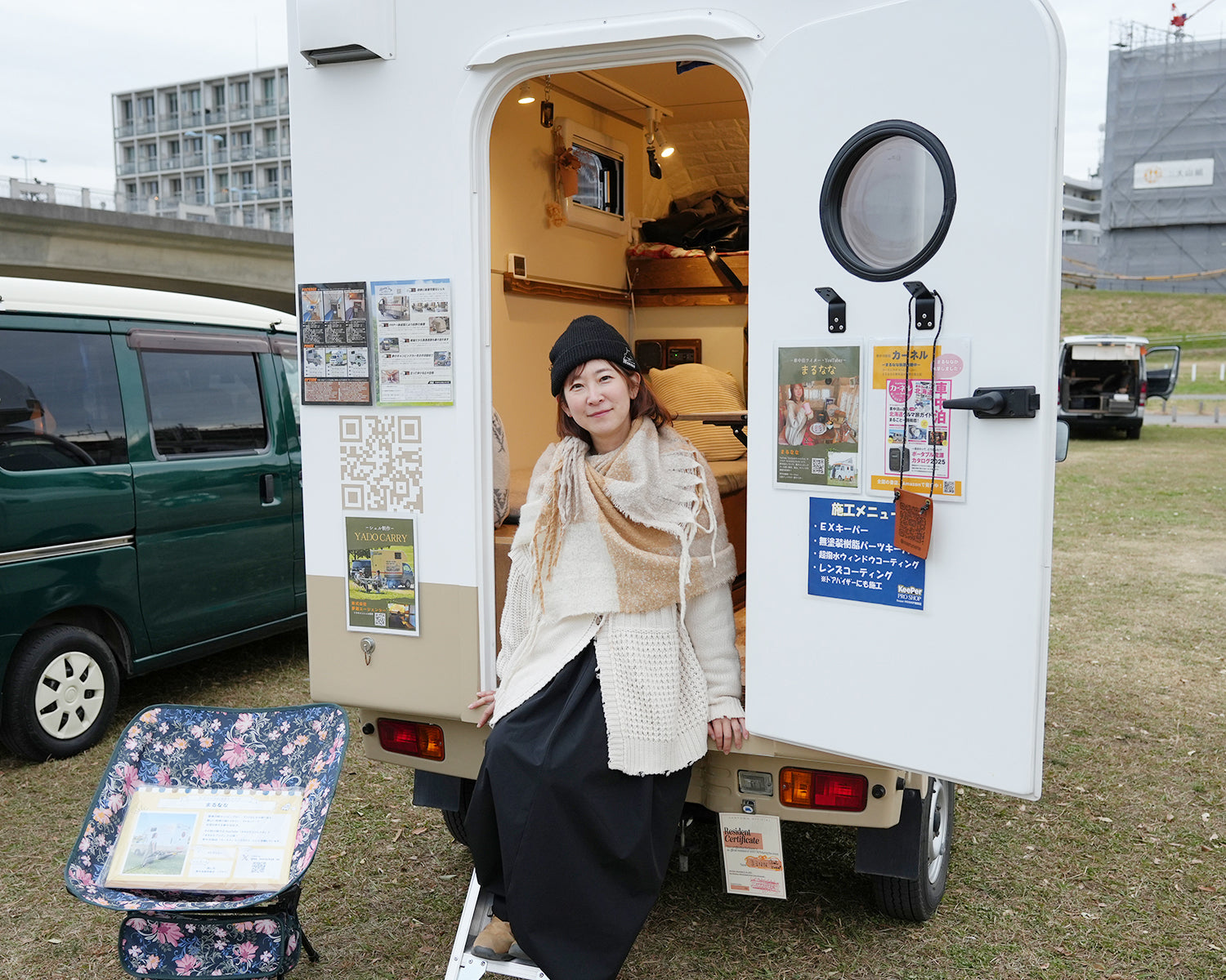 まるななさんは、札幌を拠点に活動する車中泊ライター。15年ほど前から軽自動車で車中泊を楽しみ、寒さ対策として 軽キャンピングカー 『テントむし』を購入。8年乗り続けた後、現在はHIJET TRUCKの荷台に積載するタイプのキャンピングカー 『ヤドキャリー』に乗り換えた。北海道の厳しい冬でも快適に過ごせる一台とともに、道内各地を車中泊で巡り、その様子をブログやYouTubeで発信している。