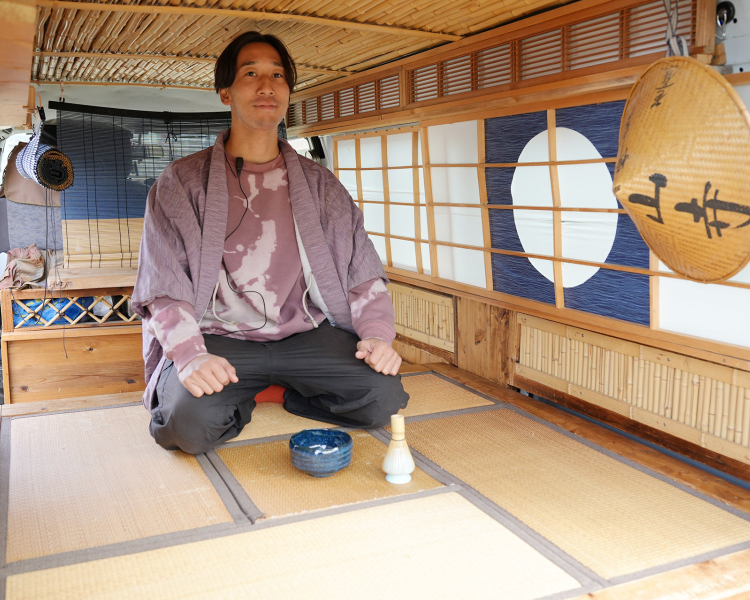 せっかくだから「誰もつくったことのないバン」を自分の手でつくりたいと考え、そこから生まれたのがクルマの外観からは想像もつかない“茶室バン”。