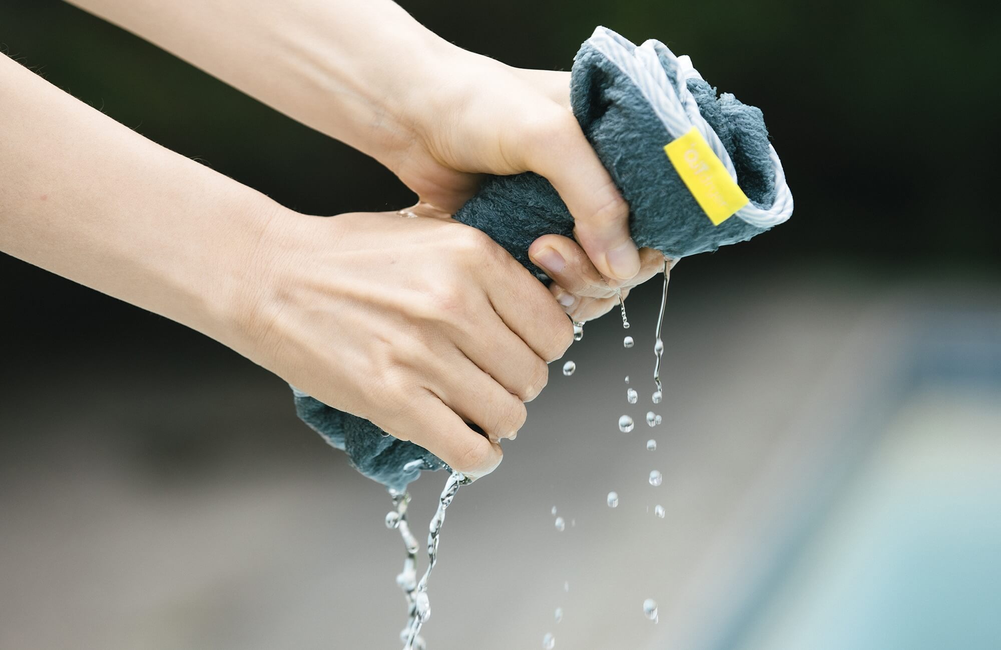 薄いから、女性の手でもしっかりタオルが絞れます。水気を絞って使う場面が多い外あそびでは、使い心地につながる大事なポイント。