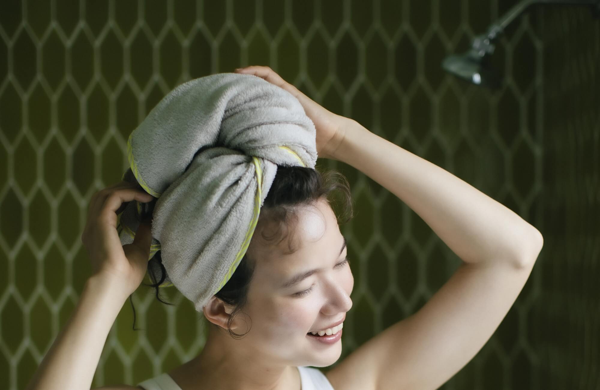 コットンは繊維断面が楕円のような形状の天然繊維なので、マイクロファイバー等の化学繊維とは違い、刺激や違和感を感じるようなこともなく、何度使っても肌や髪に負担がかかりません。また、脱脂加工したコットンの特性で洗う度にふくらみが増し、よりふわっとした心地いい風合いになってくるのも特徴です。