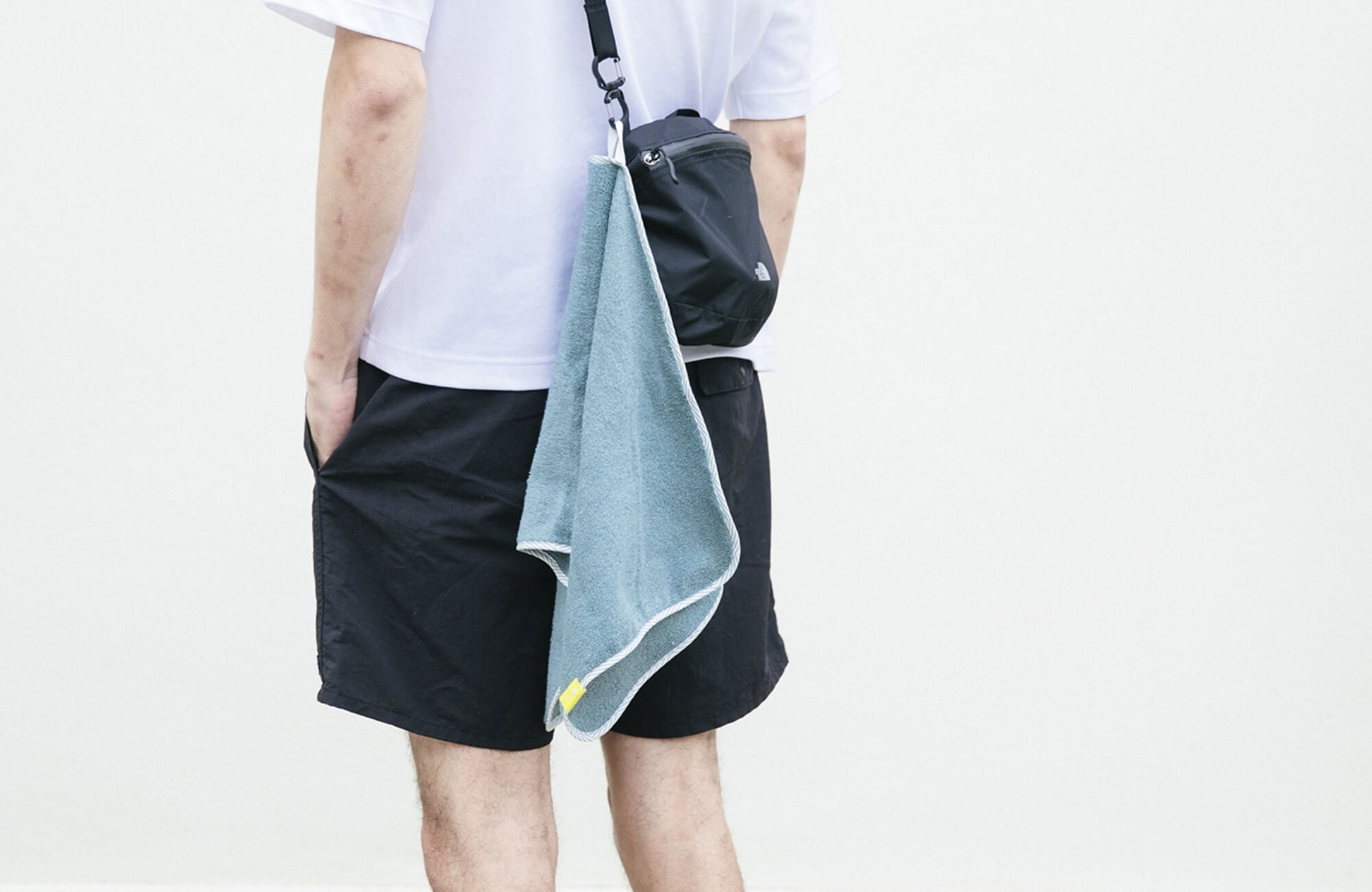 ラージサイズはフェイスタオルよりもちょっと長めのサイズ。このタオル1枚でカラダと髪を拭けるから、タオルを複数枚持たなくてもOK。持ち物をできるだけ減らしたい方にオススメです。