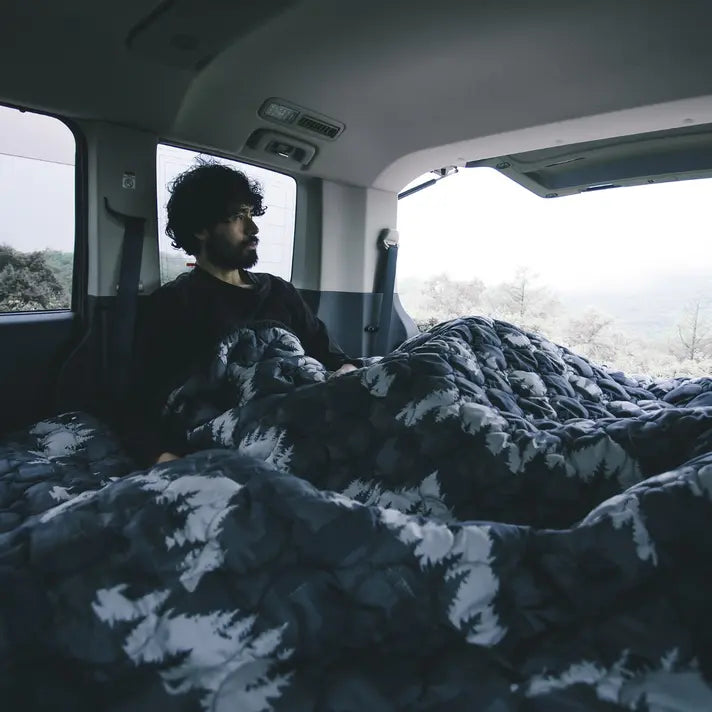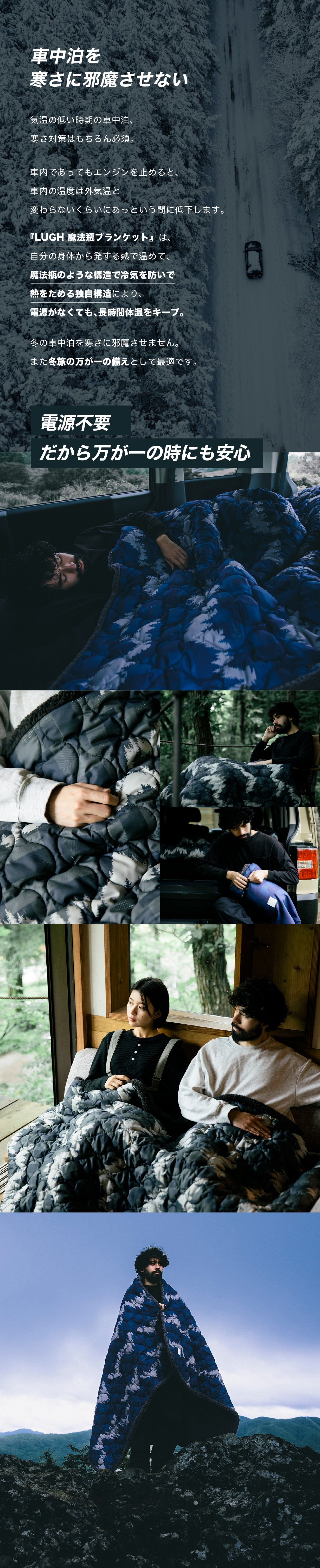 「バンライフ(車中泊)を寒さに邪魔させない」というコンセプトから生まれた「LUGH 魔法瓶ブランケット」。