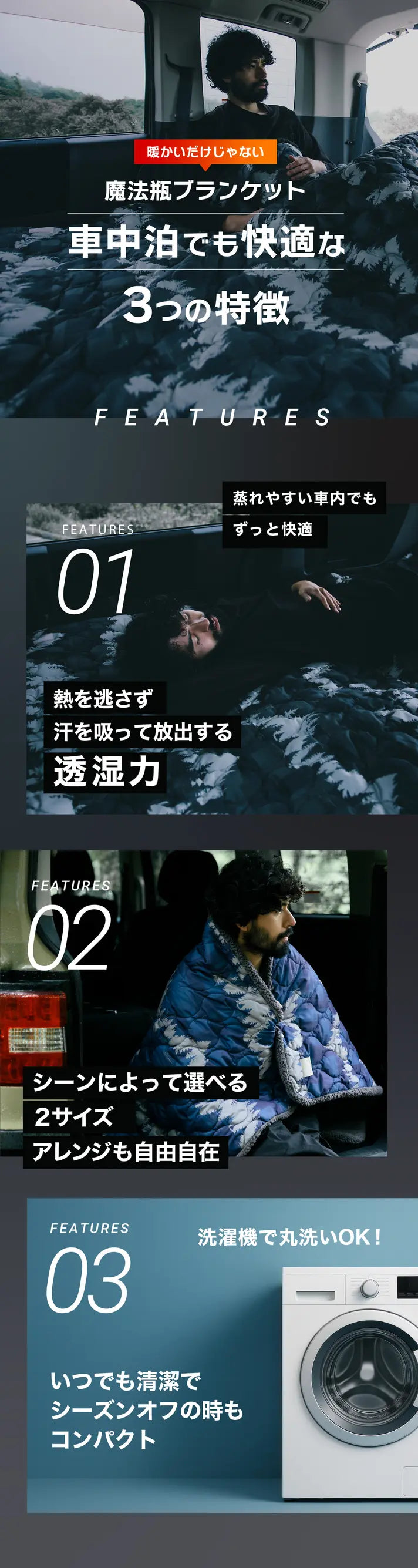 魔法瓶ブランケットは、車中泊やアウトドアはもちろん日常使いにもオススメ。