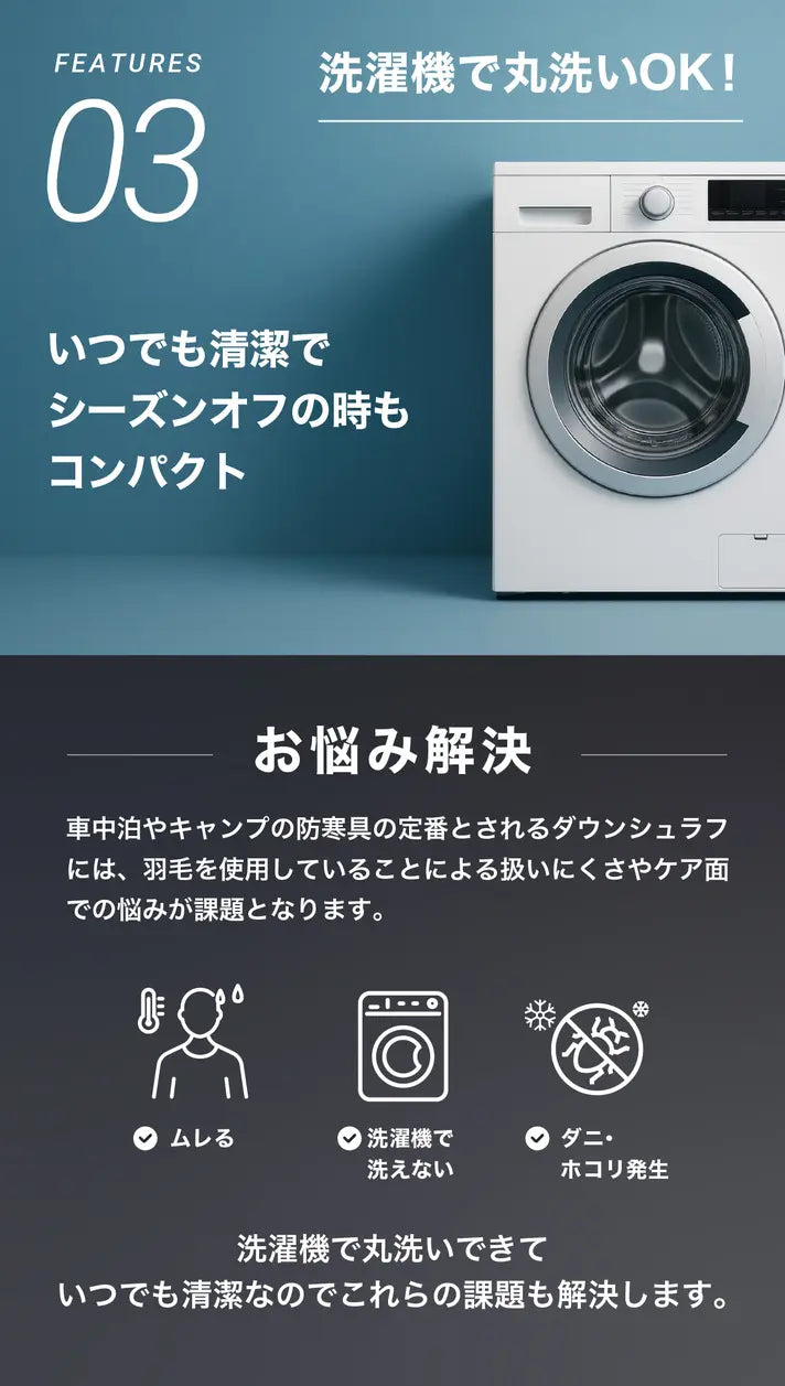 ※ダニ・ホコリの発生は洗濯機による丸洗いによって防止