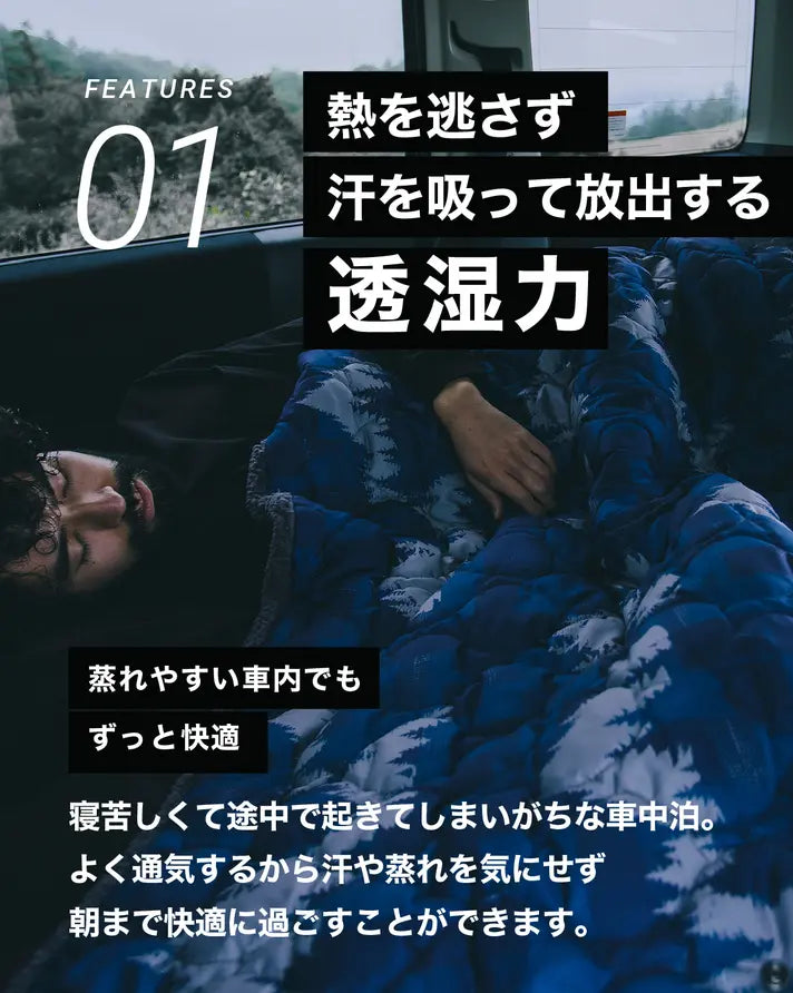寝具メーカーが車中泊のために作った保温ブランケットです。