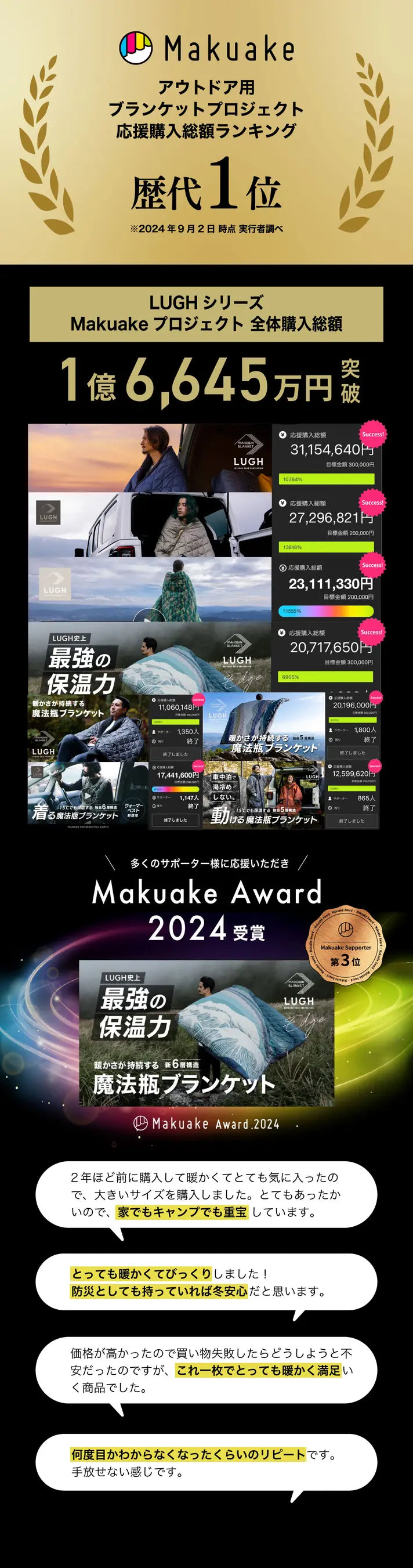 シリーズ累計購入金額1億円突破!大好評「LUGH 魔法瓶ブランケット」シリーズ
