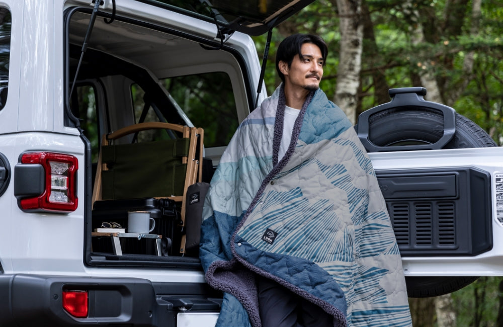 リビング使いからアウトドアシーンまで、幅広い使い方ができるブランケット。