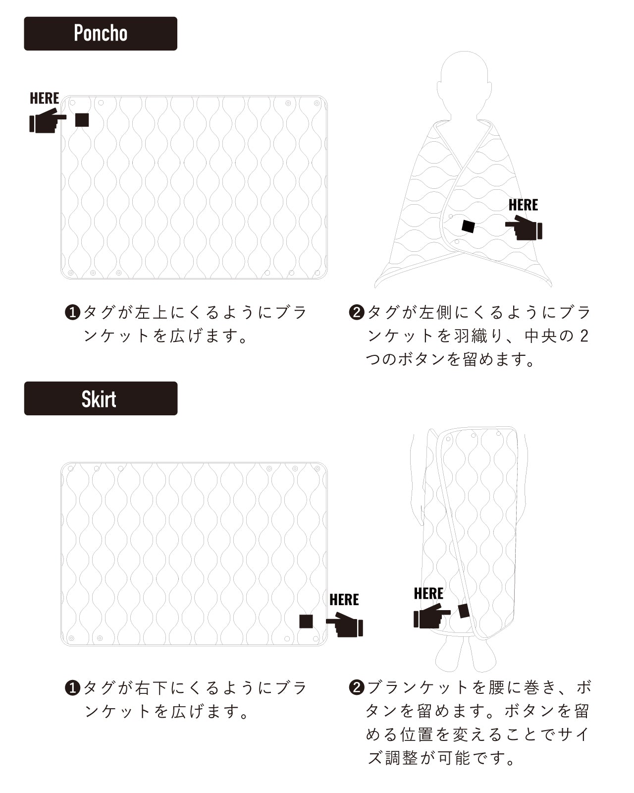 縁にあるボタンを留めるとラップスカート仕様に。冷えてしまいがちな腰回りもしっかりあたたか。