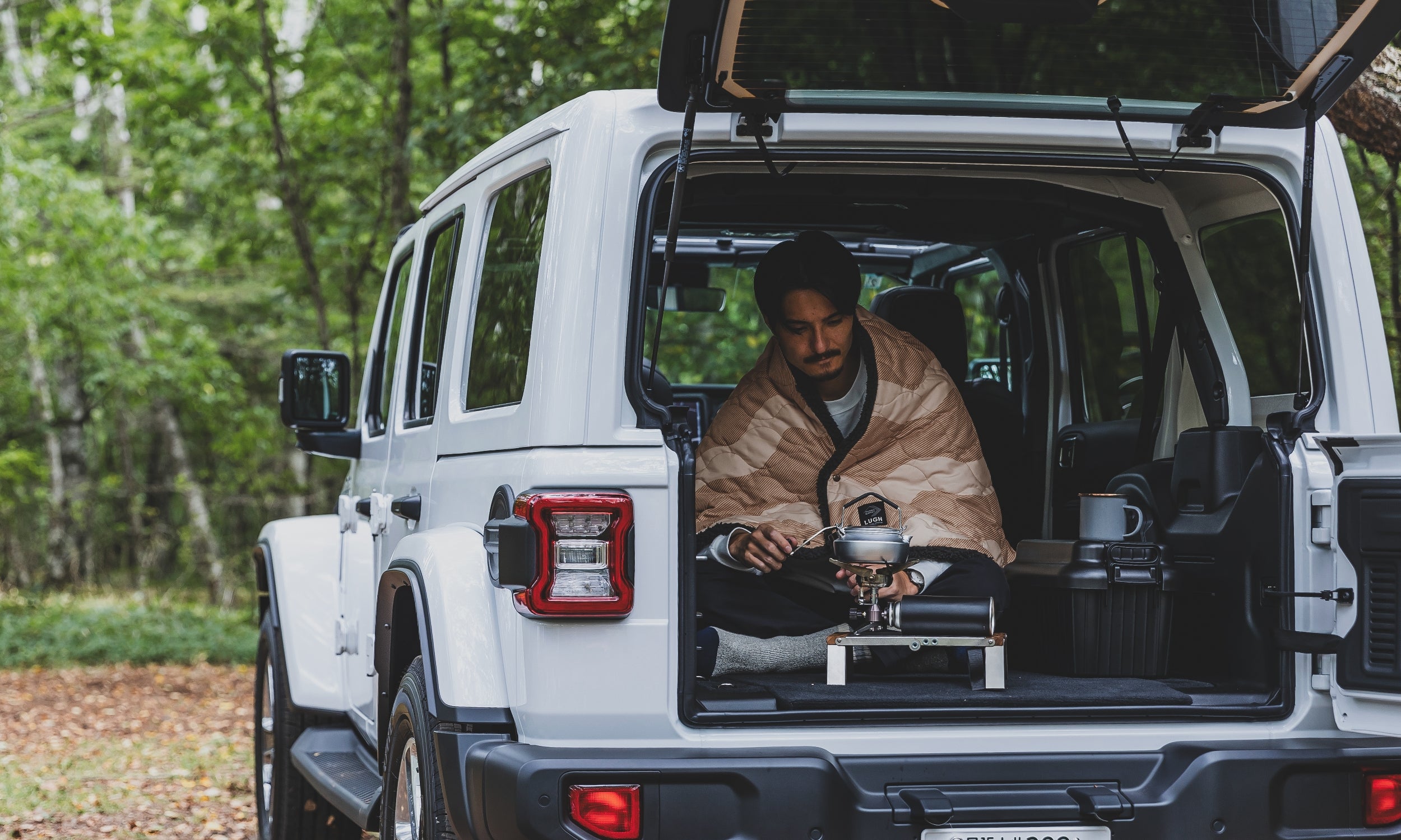 Sサイズは、95×138センチ。フロントのボタンを留めるだけでポンチョとして使えるサイズ(男女兼用)。両手があくので、なにかと動きがちな車中泊キャンプでも、作業しながら使えます。