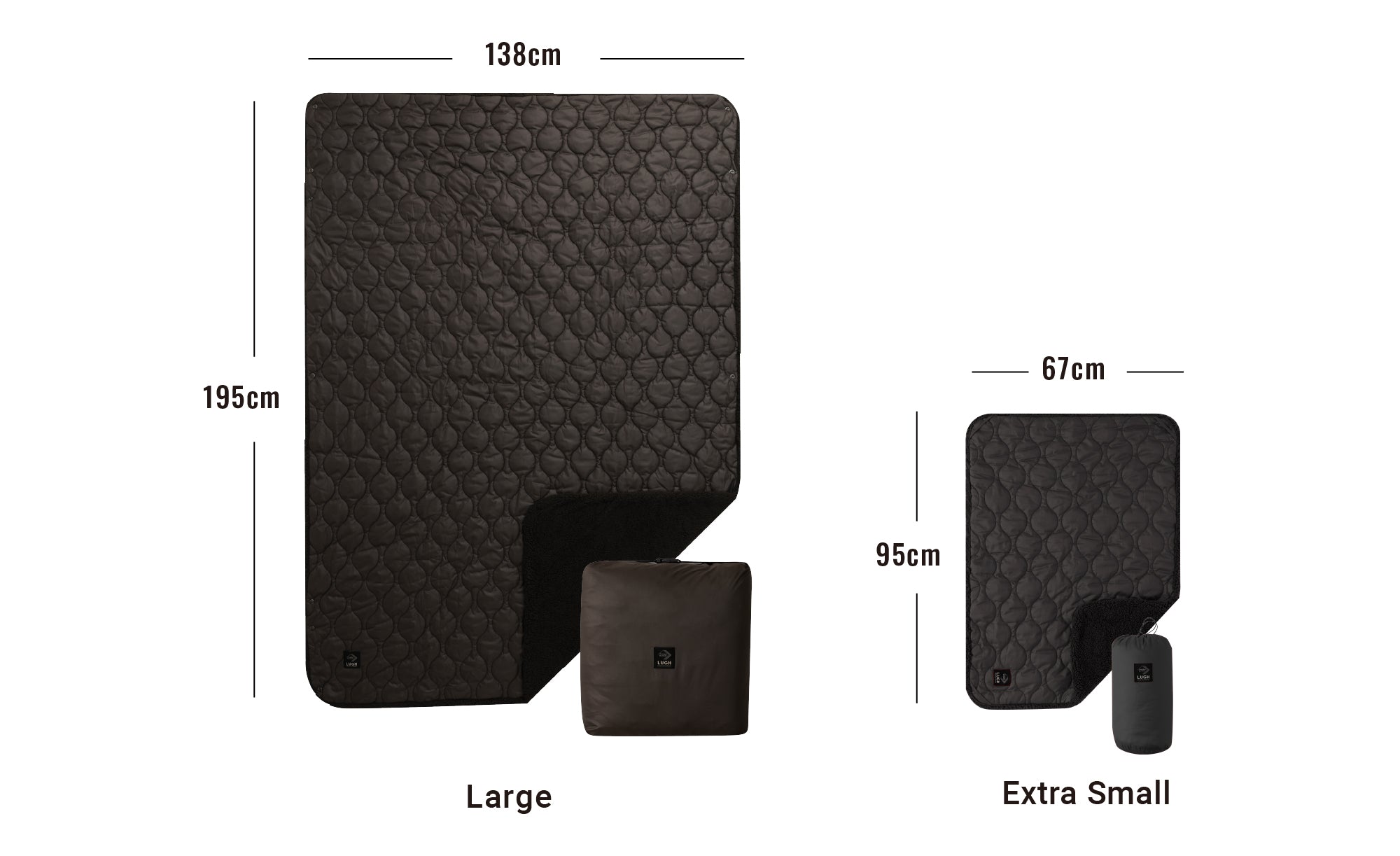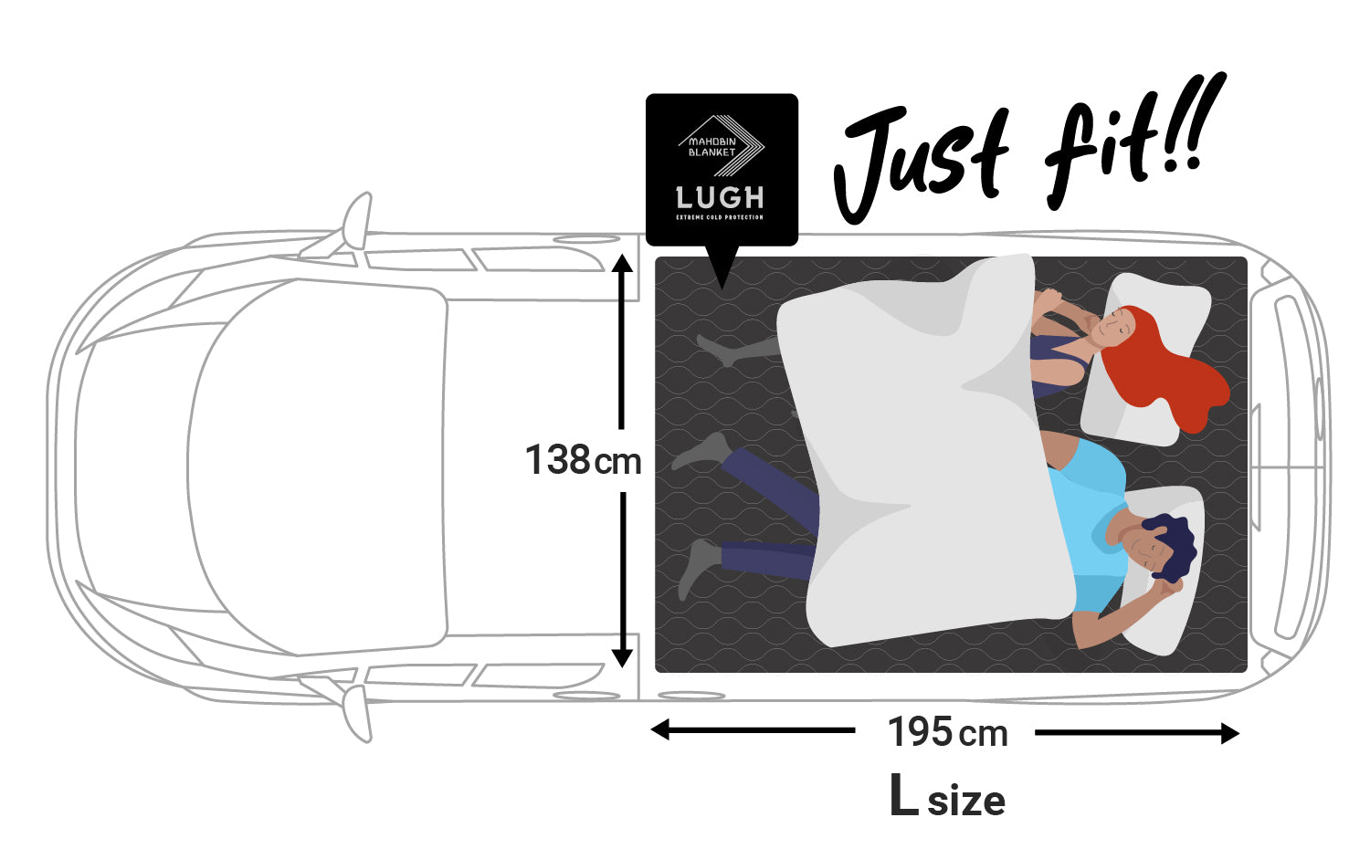 Lサイズはミニバンサイズにぴったりのラグや毛布として。男性が寝てもしっかり足元までくるまれるゆったりとした大きさ。