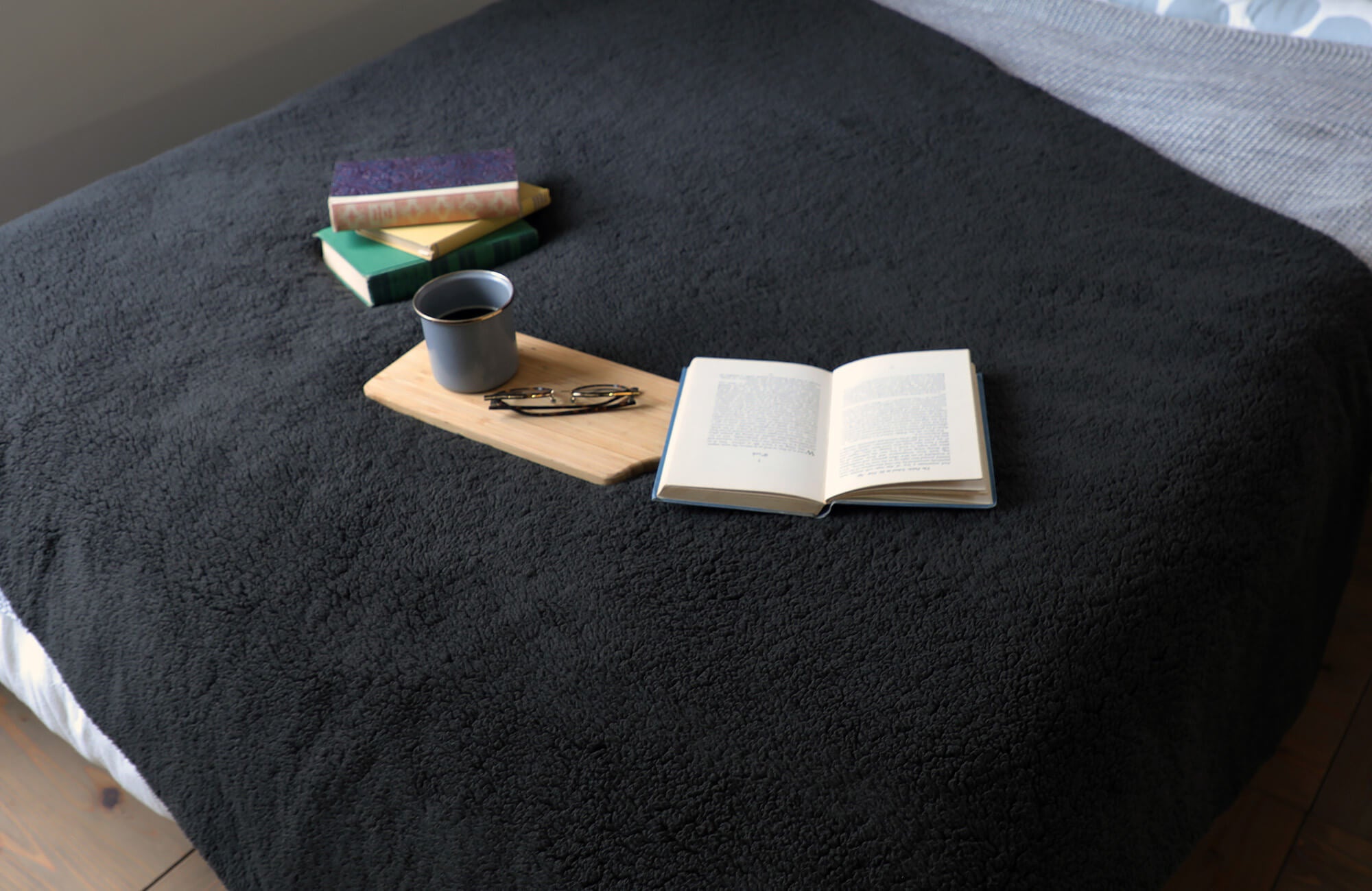 広げてラグとしての使用もおすすめ、触れた瞬間あたたかいマイクロシープボアは毛足が長く、ふかっとした座り心地がくつろぎタイムにぴったりです。
