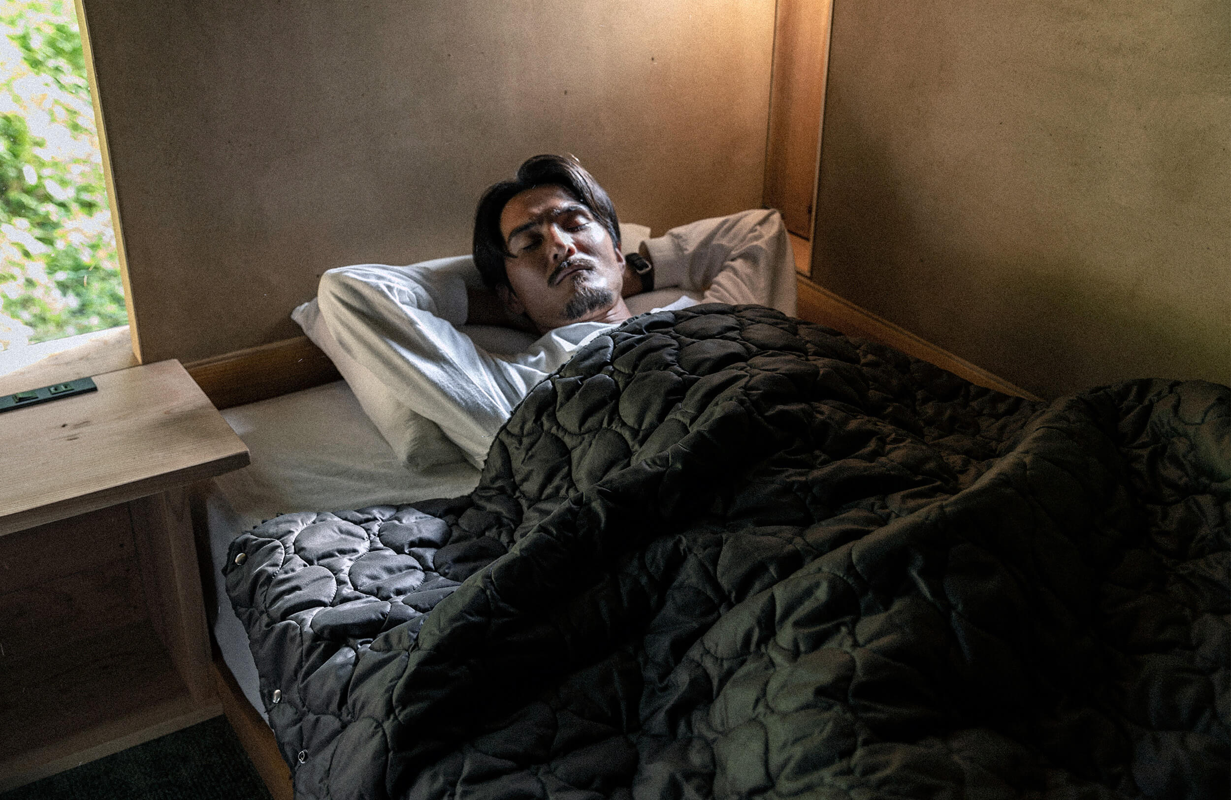 男性が寝てもしっかり足元までくるまれるゆったりとした大きさです。